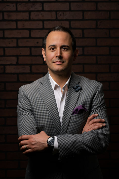 This style is what most people think of when they hear the word "headshot". A standard quarter length photo, with you usually standing and looking mostly straight on to the camera. The backdrop is usually a solid neutral color. The lighting is fairly even and pleasing.